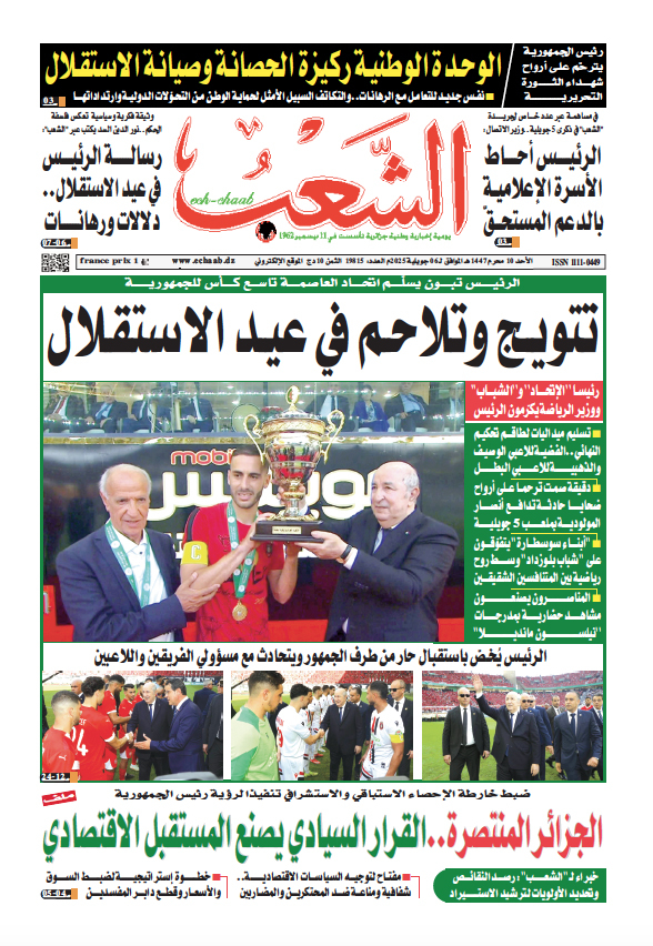 توّج فريق إتحاد العاصمة، أمس، بكأس الجمهورية، للمرة التاسعة في تاريخه عقب فوزه على شباب بلوزداد، في النهائي الذي جرى تحت إشراف رئيس الجمهورية السيد عبد المجيد تبون، بملعب نيلسون مانديلا ببراقي، ويدين الإتحاد بهذا الفوز للثنائي بن عياد وخالدي، اللذان نجحا في منح الأفضلية للفريق، حيث منح رئيس الجمهورية الكأس لقائد إتحاد العاصمة سعدي رضواني، معلنا انطلاق الأفراح في معاقل إتحاد العاصمة.
