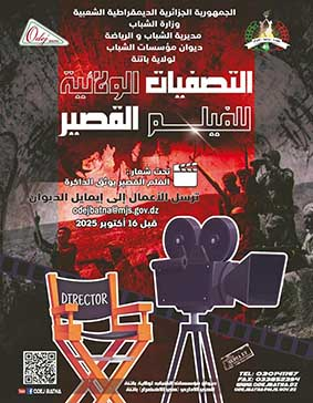 الثقافي اكتشافٌ للمواهب.. واعتــزازٌ بالذاكـرة الوطنيـة تصفيات «اللقاء الوطني للفيلم القصير للشباب» بباتنة 2025/09/27