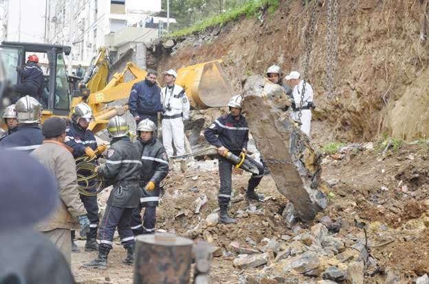 وحُملت المصابتان باستعمال البطانيات التي أسرع بها سكان شارع بوقرة لتوضعا على الرصيف في انتظار وصول مصالح الحماية المدنية إلى عين المكان، وبعد حوالي ربع ساعة نقلت سيارة الإسعاف التابعة لذات المصالح المرأتين إلى المستشفى. وبقيت الجهود متواصلة بحثا عن مصابين أو ضحايا تحت الانقاض في ظل تضارب الأقوال حول وجود أفراد تحت حطام الجدار، وهو ما ستدعى الاستنجاد بالفرقة «السينو تقنية» تتكون من ثلاثين عنصرا وتضم كلابا مدربة للبحث تحت الانقاض، واستمرت العملية إلى غاية حوالي الثالثة والنصف بعد الزوال، حيث تم تنظيف المكان والتأكد من خلوه من الجثث، والمصابين.