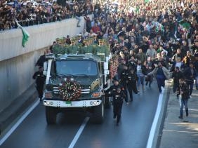 وكان جثمان الفقيد المسجى بالعلم الوطني والمحمول على أكتاف ضباط في الجيش الشعبي الوطني قد وصل صباح اليوم إلى قصر الشعب للسماح بإلقاء النظرة الاخيرة عليه قبل تشييع جنازته بعد صلاة الظهر بمربع الشهداء بمقبرة العالية.