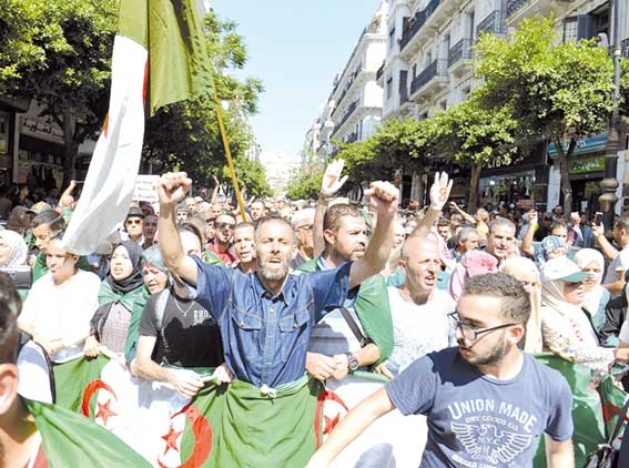 أسابيع متتالية تمسك فيها كل جزائري بمطلبه وبضرورة التغيير الجذري والقضاء على كل رموز النظام، بالخروج كل يوم جمعة في مسيرات سلمية شارك فيها الكبير والصغير، مواطنون بالرايات الوطنية رفعوا شعارات معبرة عن آمالهم ومواقفهم الحرة لمستقبل أفضل للبلاد، رددتها الحناجر المدوية «الجيش الشعب خاوة- خاوة»، مبدين بذلك مساندتهم لقرارات المؤسسة العسكرية التي كانت حريصة على ضمان الإنتقال السلس للبلاد وفق الدستور.
