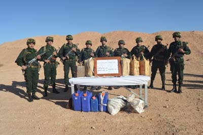 وفي إطار محاربة التهريب والجريمة المنظمة، أوقفت مفارز للجيش الوطني الشعبي، بكل من جانت بالناحية العسكرية الرابعة وتمنراست وبرج باجي مختار بالناحية العسكرية السادسة، سبعة وأربعين (47) شخصا وحجزت أربع (04) مركبات وستة (06) مطارق ضغط وستة (06) مولدات كهربائية وجهازي (02) اتصال عبر الأقمار الصناعية، كما أحبطت مفارز أخرى للجيش الوطني الشعبي خلال عمليات متفرقة بكل من تبسة وسوق أهراس بالناحية العسكرية الخامسة وكذا بأدرار بالناحية العسكرية الثالثة محاولات تهريب (8.894) لتر من الوقود، في حين تم توقيف (01) شخصا، ببسكرة بالناحية العسكرية الرابعة، كان على متن (01) شاحنة محملة بـ (4,92) طن من المواد الغذائية الموجهة للتهريب.