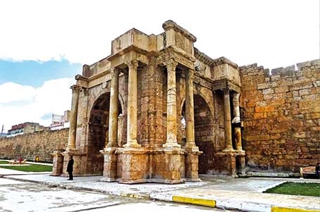 هو تحفة فريدة ضخمة بناها الرومان في تبسة في عام 75م بعد الميلاد، وهو مقام على مساحة حجرية مربعة الشكل بحيث تظهر مجموعة من الأعمدة الكبيرة التي تنتهي بأقواس فريدة، ويقع خلفها سور كبير عالٍ من حجارة كبيرة الحجم، يحرص السياح على التقاط صورة تذكارية له أثناء زيارتهم لتبسة.