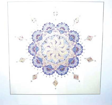 وقالت محدثتنا إن الامتداد اللامتناهي في الأشكال الزخرفية يعد من الترميزات المتحققة كثيرا في معظم التجريدات الإسلامية، فهو يتحقق على سبيل المثال في الإيقاع المستمر للوحدات الزخرفية، وما من شكّ أن بحث الفنان المسلم الفكري والروحي في الامتداد اللانهائي في الزخارف الإسلامية هو دلالة حركة الكون اللامتناهية، فالامتداد اللامتناهي في التجريدات الزخرفية يكاد بحركته يجعل الناظر يلتمس لا نهائية البعد والذي بدوره يظهر بمسافات مختلفة وأبعاد متباينة، فهي الصلة الوثقى بين المرء وخالقه التي تبدأ من العشق الإلهي، ولتجسيد الامتداد اللامتناهي سلك الفنان المسلم طرق عديدة كان من بينها اعتماده الحركة اللولبية للأشكال في زخارفه، هو ما يوحي بالمعنى الرمزي العميق الذي أخذ شخصيته المتميزة في الزخارف الإسلامية، فحركة الخطوط المتشابكة في الزخرفة هي حقا حركة الدهشة والذهول لهذا الأمر، فهي حركة التسامي عن قيم المادة، أضف إلى ذلك طريقة تنفيذ العمل الزخرفي وتذهيب اللوحة، مع تحضير ماء الذهب.