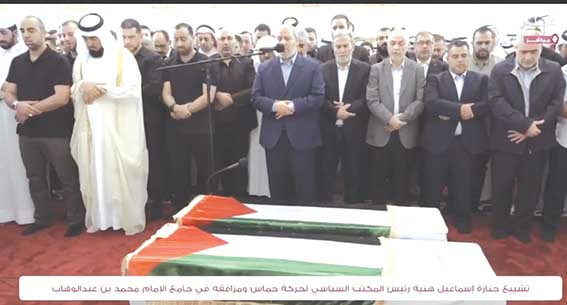 بحضور رسمي وشعبي كبير، تمّ أمس بالعاصمة القطرية الدوحة، تشييع رئيس المكتب السياسي لحركة حماس، إسماعيل هنية، الذي تعرّض للاغتيال الأربعاء الماضي رفقة أحد حراسه في مقر إقامته بطهران، غداة مشاركته في حفل تنصيب الرئيس الإيراني مسعود بزشكيان. ووري رئيس المكتب السياسي لحركة المقاومة الإسلامية (حماس) الشهيد إسماعيل هنية الثرى في قطر، أمس الجمعة، بعد جنازة شعبية ورسمية شهدت حضور مسؤولين من دول عربية وإسلامية.