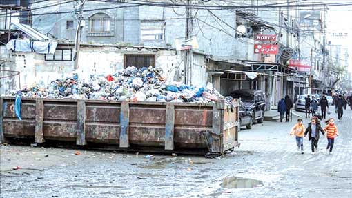 وقال مهنا: “غزّة تعاني من مشكلات صحية وبيئية خطيرة نتيجة الاستهدافات الصهيونية والحصار، أبرزها تكدّس النفايات وانتشارها العشوائي، وتسرّب مياه الصرف الصحي بالشوارع، ممّا يزيد من المخاطر الصحية وينشر الأمراض المعدية”، وأشار إلى تراكم نحو 350 ألف طن من النفايات المنزلية بشوارع غزّة، خاصة بالمناطق المكتظّة بالسكان والنازحين، ما سبّب انتشار الروائح الكريهة والحشرات والقوارض.