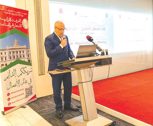 وجرى هذا إلقاء بحضور سفير الجزائر بقطر، صالح عطية، رئيس مجلس التجديد الاقتصادي الجزائري، كمال مولى، رئيس الاتحاد الوطني للمقاولين العموميين، شرف الدين عمارة، الرئيس المدير العام لمجمع “صافكس”، كريم بوقادوم، وكذا رجال أعمال قطريين.