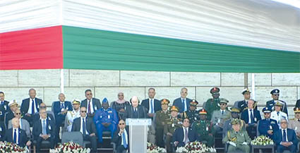 وأشار رئيس الجمهورية، إلى أن حضور قادة بعض الدول الشقيقة وممثلي الدول الصديقة، في هذه الاحتفالية الخاصة، يعتبر «تقديرا منهم لمكانة الجزائر ومساهمتها، في إرساء الأمن والاستقرار في المنطقة وثباتها على مساندة القضايا العادلة، والدفاع عن حق الشعوب في السلم والتنمية».