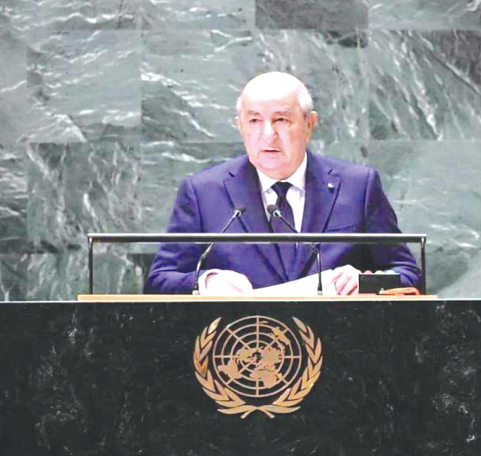 وأبرز رئيس الجمهورية أنّ قناعة الجزائر تبقى راسخة بأنّه “لا مناص أولا من تكثيف الضغوط على المحتل الإسرائيلي دبلوماسيا وسياسيا واقتصاديا، والعقوبات، على شاكلة تجميد عضوية المحتل الإسرائيلي بالأمم المتحدة وفرض حضر على توريد الأسلحة الموجهة إليه”، مشيرا إلى أن العقوبات “تظل وحدها الكفيلة بردع هذا الأخير، وحمله على وقف حربه على غزة وعلى لبنان، وكذا تصعيده في المنطقة”.