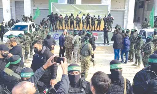 كما كان مقرّرا، سلّمت كتائب عز الدين القسّام الجناح المسلّح لحركة حماس، أمس السّبت، الأسيرات الصهيونيات العسكريات الأربع إلى اللجنة الدولية للصليب الأحمر في ميدان فلسطين بمدينة غزة، ضمن المرحلة الأولى من اتّفاق وقف إطلاق النار الذي دخل حيز التنفيذ في 19 جانفي الجاري.