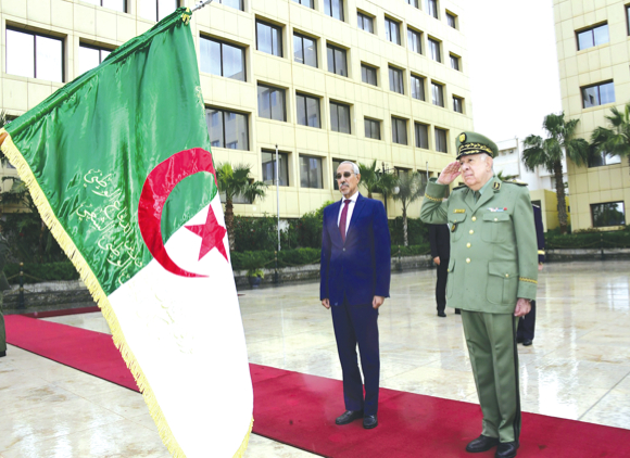 أوضح المصدر، أن «مراسم الاستقبال استُهلت بتحية العلم الوطني وتقديم التحية العسكرية للضيف من طرف تشكيلات من مختلف قوات الجيش الوطني الشعبي».