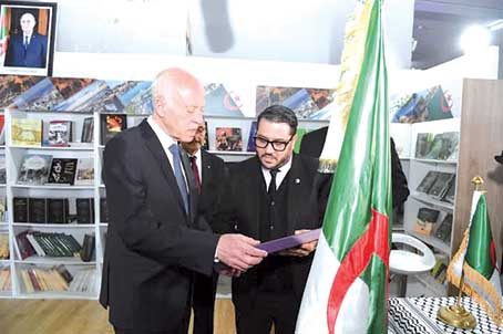 وبهذه المناسبة، قدّم ممثلو الجناح الجزائري إلى الرئيس التونسي عددا من الإصدارات التي تتناول سير رموز فكرية وتاريخية جزائرية، وذلك في لفتة رمزية تجسد عمق الروابط الثقافية بين البلدين وتعبر عن التقدير المتبادل وتقاطع الروافد الفكرية والتاريخية بين الشعبين الشقيقين، وفقا لذات المصدر.