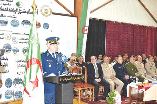 مضيفا أنّ فعاليات الأبواب المفتوحة من شأنه تمكين الجمهور الحاضر خاصة منه الشباب، بالإطلاع على أحد مكوّنات الجيش الوطني الشعبي، ألا وهو الرياضة العسكرية بمختلف فروعها وتخصّصاتها، مؤكّدا أنّ المؤسّسة العسكرية توفّر كل الإمكانات والوسائل المادية، وكذا تأهيل الكفاءات البشرية بمستوى الرياضة العسكرية من خلال اعتمادها كمنهاج على مستوى المؤسّسات التكوينية العسكرية في إطار التربية البدنية للفرد العسكري، على مستوى جميع وحدات وهياكل التكوين بالجيش الوطني الشعبي، ذلك لأنها تساهم في التحضير البدني والمحافظة على الجاهزية القتالية للعسكري ويضمن لهم أداء مهامهم على أحسن وجه.