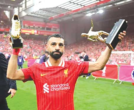 توّج اللاّعب المصري محمد صلاح نجم فريق ليفربول، بشكل رسمي، بجائزة الحذاء الذهبي كأفضل هدّاف في البطولة الإنجليزية الممتازة لموسم 2024-2025.
