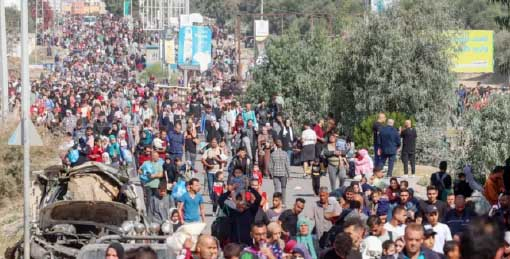 وأفاد مراسلون بأنّ مئات العائلات خرجت على عجل محمّلة بما خف من متاعها، عبر عربات تجرها الحيوانات وسيارات متهالكة أو سيرا على الأقدام، وسط مشاهد دمار واسع وخوف يسيطر على الجميع، خصوصا الأطفال.