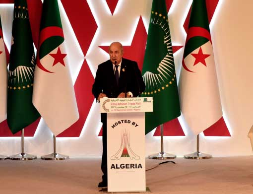 وأعرب رئيس الجمهورية عن يقينه بأن “مستقبل إفريقيا، كما تؤمن به الجزائر، يكمن في مدى القدرة الجماعية لدولها على إقامة بنية تحتية متكاملة، مبرزا أهمية خلق مناخ للاستثمار لفائدة الجميع، وهو الهدف الذي يرتبط تحقيقه – مثلما قال – بـ«مضاعفة الجهود وحشد الطاقات وتوحيد المسار لنحول منطقة التجارة الحرة الإفريقية إلى أداة فعلية للتنمية”.