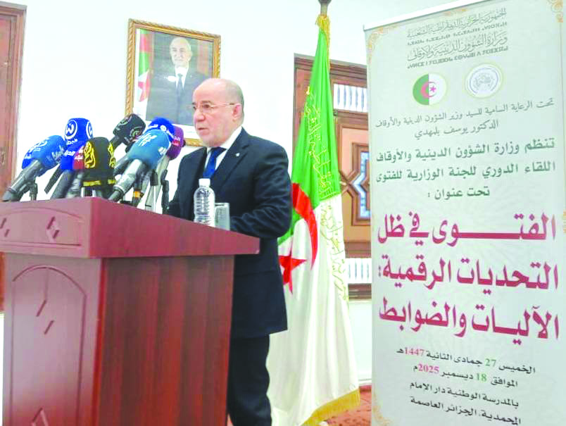 أشرف وزير الشؤون الدينية والأوقاف، يوسف بلمهدي، الخميس، بالجزائر العاصمة على اللقاء الدوري للجنة الوزارية للفتوى الموسوم بـ “الفتوى والتحديات الرقمية في العصر الحديث”، والذي تمّ خلاله إبراز دور العلماء والأئمة في مواجهة محاولات المساس بالمرجعية الدينية الوطنية.