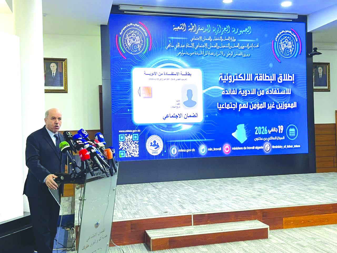 ولدى تطرّقها إلى البطاقة الإلكترونية الجديدة، أكّدت الوزيرة أنها تخص «المعوزّين غير المؤمّن لهم اجتماعيا، بدون دخل، بمن فيهم المصابون بأمراض مزمنة، إضافة إلى أولادهم القصر تحت كفالتهم»، وفقا لأحكام المرسوم التنفيذي رقم 24-287 المؤرّخ في 22 أغسطس 2024، المحدّد لكيفيات التكفّل الطبي بالمعوزّين غير المؤمّن لهم اجتماعيا، وكذا القرارات الوزارية المشتركة الموقّعة بين القطاعات المعنية. للإشارة، تسمح البطاقة الإلكترونية للمعوزّين وأولادهم القصر بـ»الاستفادة، بالمجان، من الأدوية الموصوفة وفق القائمة المحدّدة بالقرار الوزاري المشترك المؤرّخ في 13 يوليو 2025، لدى الصيدليات المتعاقدة مع الصندوق الوطني للتأمينات الاجتماعية للعمّال الأجراء، ويستفيد المصابون منهم بأمراض مزمنة من العلاج لمدة تكفيهم ثلاثة أشهر».