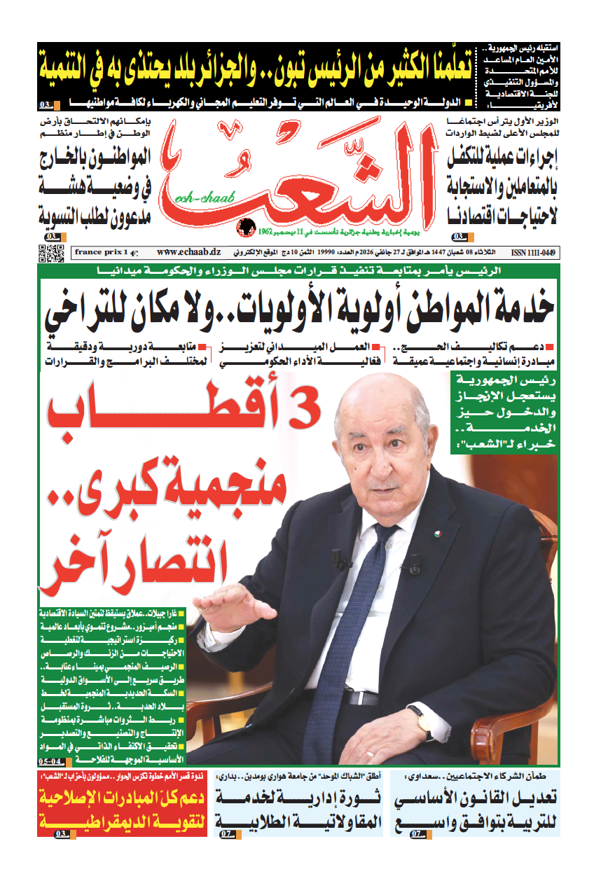 الثلاثاء, 27 جانفي 2026