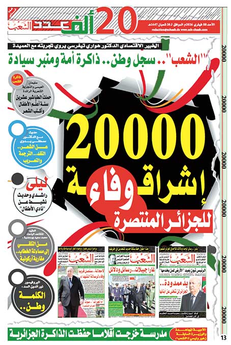 “الشعب” .. عشـرون ألف عدد في كنف الجــزائر المنتصرة