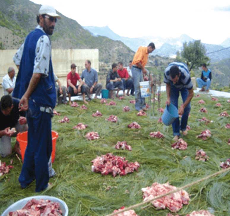 تشهد العديد من قرى منطقة جرجرة أجواء مميزة قبيل حلول شهر رمضان، وذلك من خلال إحياء عادة الوزيعة “ثيمشرط”، هذه العادة التي تعتبر موروثا شعبيا يتغلغل في الثقافة الأمازيغية، والتي تعود في مختلف المناسبات، خاصة شهر رمضان، لما لها من أبعاد اجتماعية وثقافية وإنسانية وروحانية، تتجسّد من خلالها مظاهر التكافل والتضامن الاجتماعي، والتي تكمن في توزيع اللحم على جميع العائلات في القرية، حيث يتساوى الفقير والغني.