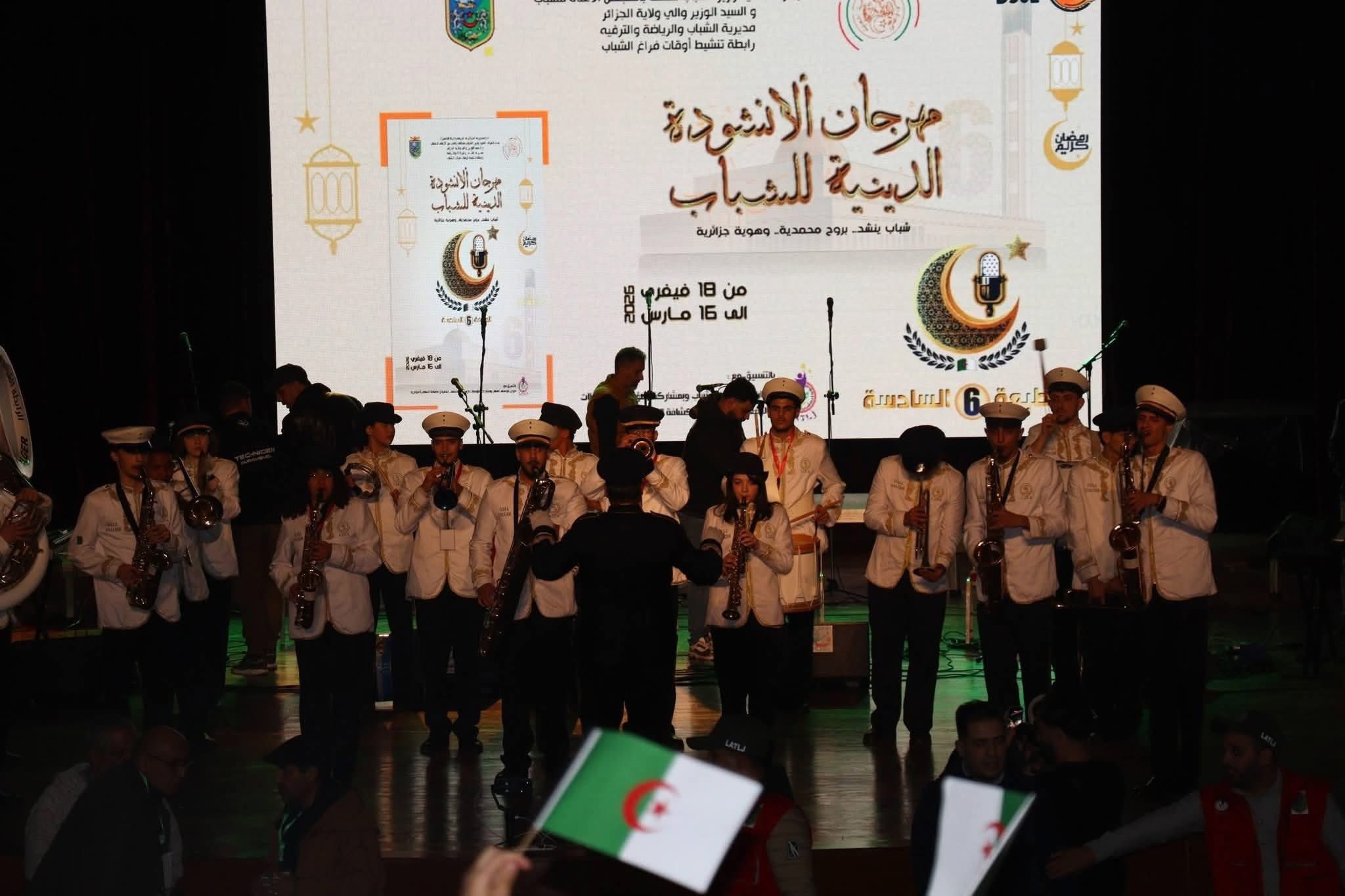 ويذكر أنّ افتتاح الطبعة السادسة لـ «مهرجان الأنشودة الدينية للشباب»، أشرف على افتتاحه نيابة عن وزير الشباب المكلف بالمجلس الأعلى للشباب، رئيس الديوان محمد مداني، وذلك بحضور إطارات ومسؤولي قطاع الشباب والرياضة لولاية الجزائر، حيث استمتع الجمهور الغفير بعرض برنامج ووصلات إنشادية مميزة، من أداء فرقتي «البهجة» و»رنيم» المختصّتين في الإنشاد الديني، إلى جانب عرض للفرقة النحاسية، وكذا تكريم بعض القائمين على هذه التظاهرة.