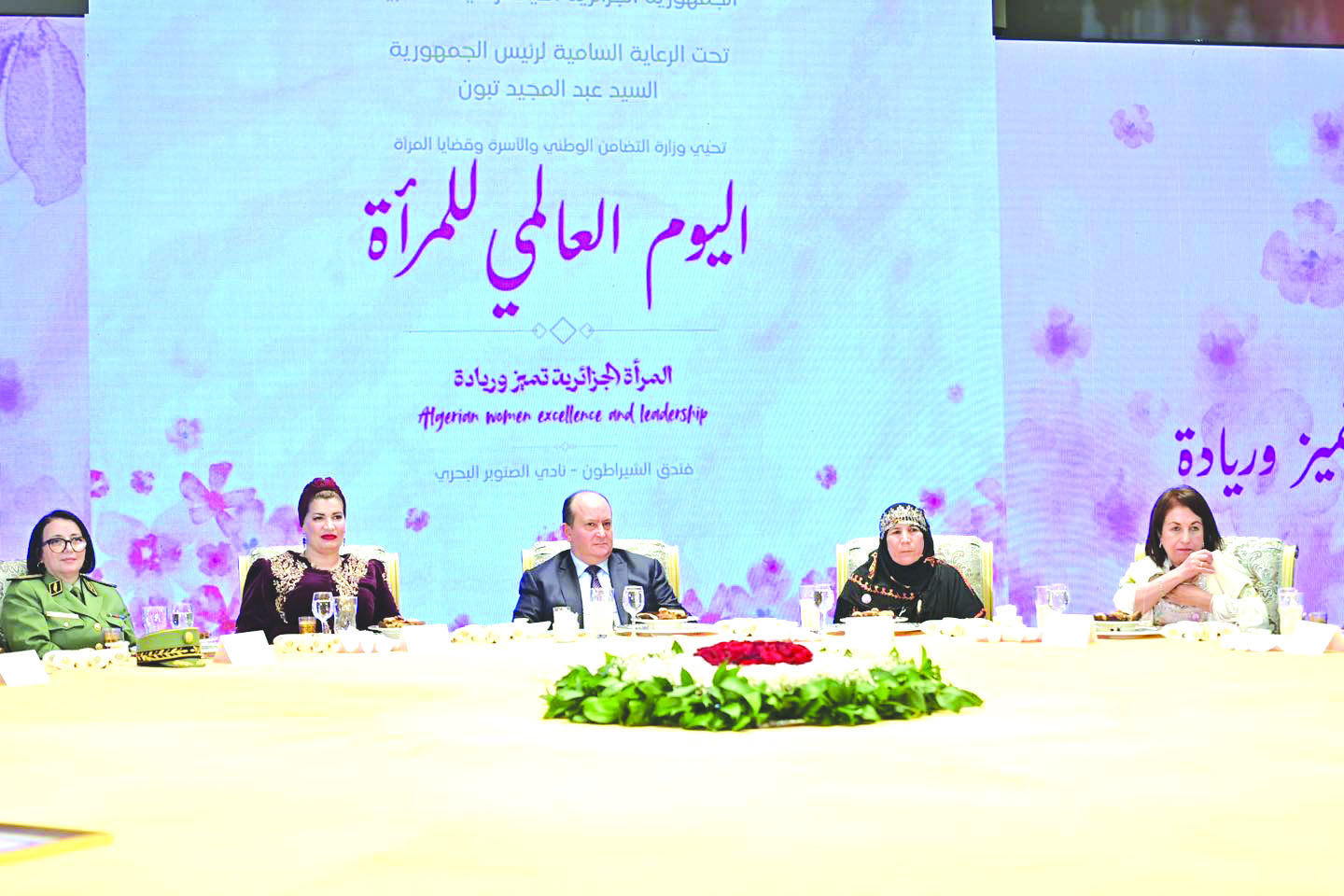 خلال حفل تكريم نظم، تحت شعار “المرأة الجزائرية..تميز وريادة” وبحضور عدد من أعضاء الحكومة وكبار مسؤولي الدولة وممثلات عن المجتمع المدني وشخصيات من الساحة الثقافية والإعلامية والرياضية.