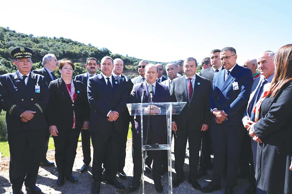 واستمع سيفي غريب إلى عروض تقنية قدّمها ممثلو القطاعات الوزارية المعنية، تناولت مختلف جوانب المشروع الواقع بين بلديتي وادي أميزور وتالة حمزة، والمنشآت الداعمة له.