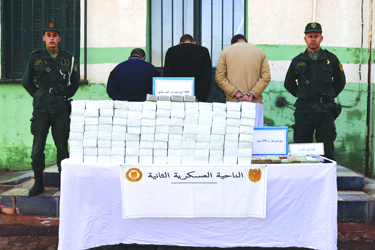 في إطار محاربة الجريمة المنظمة ومواصلة للجهود الحثيثة الهادفة إلى التصدي لآفة الاتجار بالمخدرات ببلادنا، «أوقفت مفارز مشتركة للجيش الوطني الشعبي بالتنسيق مع مختلف مصالح الأمن، خلال عمليات عبر النواحي العسكرية، (34) تاجر مخدّرات وأحبطت محاولات إدخال (2) قنطارين و(86) كيلوغرام من الكيف المعالج عبر الحدود مع المغرب، فيما تمّ ضبط (51.772) قرص مهلوس».