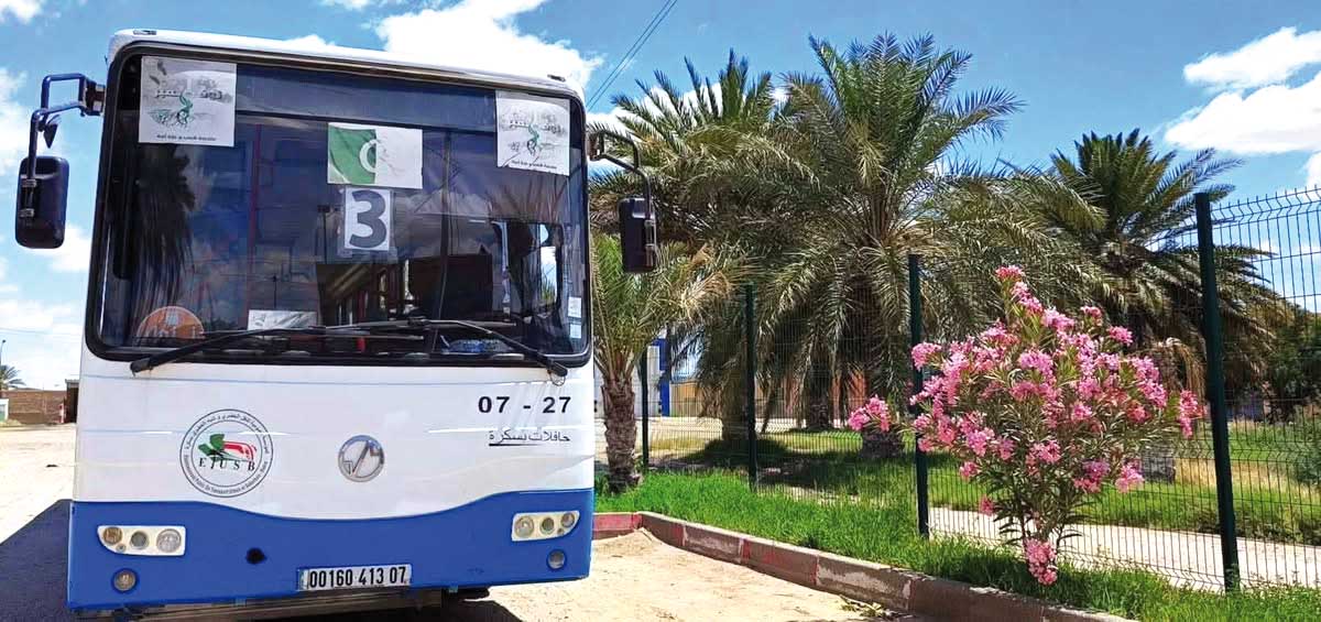 تقوم مديرية النقل بولاية بسكرة بتحضير الإجراءات المتعلقة بدعم النقل الحضري وشبه الحضري، من خلال تزويد المؤسسة العمومية للنقل الحضري بـ 70 حافلة جديدة، تضاف إلى حظيرة المؤسسة التي تضم حاليا 28 حافلة تغطي بلديات بسكرة والحاجب وشتمة.