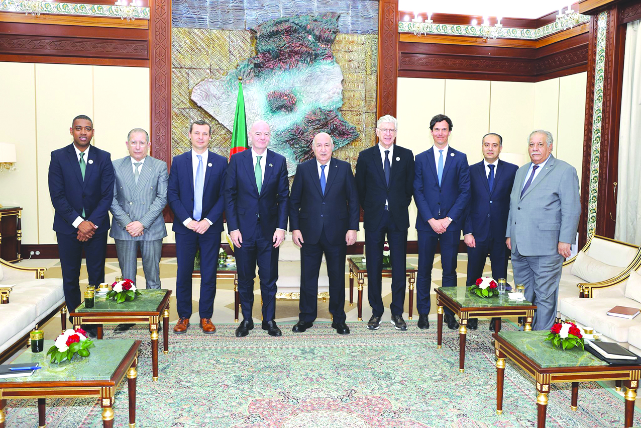 كان رئيس الجمهورية، السيد عبد المجيد تبون، قد استقبل أمس الأول الخميس، رئيس الاتحاد الدولي لكرة القدم، جياني إنفانتينو، والوفد المرافق له. وحضر اللقاء السادة: مدير ديوان رئاسة الجمهورية، بوعلام بوعلام، وزير الرياضة، وليد صادي، والمستشار لدى رئيس الجمهورية، مكلف بالمديرية العامة للاتصال، كمال سيدي السعيد.وبالمناسبة، أخذ رئيس الجمهورية صورة تذكارية مع أعضاء وفد الاتحاد الدولي لكرة القدم. وقد أهدى وفد الاتحاد الدولي لكرة القدم لرئيس الجمهورية مجسّما لكأس العالم وقميصا رياضيا.